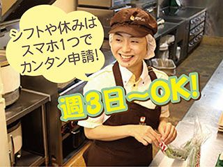 メッセージ 10代・20代・30代・40代・50代から シニア世代まで活躍中! <ここがポイント!> ・週3日~OK! ・シフトや休みはスマホ1つでカンタン申請! ・急な休日希望にも対応できます! ・有給休暇&加給制度あり ・勤務時、全メニュー40%OFF!社割有! ・日祝は時給50円アップ ・お盆や正月は時給50~300円UP! ・料理の腕が上がっちゃうかも♪ 働き方など、まずはいろいろご相談下さい。 長く、安心して働ける環境を 一緒に考えていきましょう! 高時給の時間帯のお仕事!フルタイムで稼げます!週3日~OK! ファミリーレストランのチェーン展開