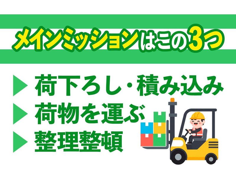 求めている人材 【必須】 業務上の安全確保のため、 日本語での会話・読み書きがネイティブレベルであること(マニュアルの読解が必要なため) ・学歴不問 ・無資格OK、未経験OK (資格は入社後に会社負担で取得可能です! ※資格取得支援制度) 【歓迎】 ・フォークリフト運転技能講習修了(1t以上) ・倉庫業務・構内作業の経験者 <こんな方にピッタリです!> ・「今さら」ではなく「今から」新しいことを学びたい方 ・正社員として安定した環境で働きたい方 ・同世代の仲間がいる環境で、安心して働きたい方 ・長く腰を据えて働きたい方 ・車の運転が好き、大きな車や乗り物が好き ・自分の生活スタイルに合わせて働きたい方 ・住宅補助の充実したところで働きたい方 ・チーム連携からスムーズに仕事を進める <みんなの入社理由> ・働き方がライフスタイルに合っていたから ・借り上げ社宅制度を活用できるから ★中途入社率50%以上! ★働き方・福利厚生・一緒に働く人の人柄に惹かれて入社した方が多いです! ★現場社員の70%が40代~50代のミドル層!