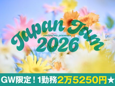 仕事内容 激アツ>>>【JAPAN JAM 2026】オフィシャルSTAFF! 毎年ゴールデンウィークに 千葉市蘇我スポーツ公園で開催される 野外音楽フェスティバル! 仲間と一緒にイベントを盛り上げよう♪ <勤務期間> 機材搬入出::2026/4/22(水)~2026/5/11(月) 案内・受付:2026/5/2(土)~2026/5/5(火) >こんなオシゴト< フェス・ライブ・コンサート・展示会・ スポーツなどなど 1年を通して様々なイベントがあります! 国内外の人気アーティストやK-POアイドル、 サマソニ、カウントダウンジャパン、 ジャパンモビリティショーなど有名イベントも多数! =============== <機材搬入出> 照明・楽器・スピーカー・椅子などの 必要な機材を運んだり、 セッティングをしたりするお仕事。 ライブやイベントの裏側や完成するまでが 見れるレアな体験が出来ちゃいます! <グッズ販売> ライブやイベント会場などでの 販売・レジ業務。 ※JAPAN JAM 2026はグッズ販売はありません。 <案内・受付> お客様のご案内やチケット確認など。