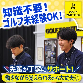 仕事内容 ◆ゴルフパートナーで働こう!◆ / アピールポイントはこちら♪♪ \ ●全国に多数展開中のゴルフパートナーグループ! 商品案内のしやすさ、指導体制、 様々なノウハウが整っています! ●スポーツ好き必見!従業員割引あり! ●未経験の方も大歓迎♪ ●学生・主婦(主夫)さん・フリーター活躍中! 【お仕事内容】 お客様に商品のご案内・販売、品出しなど ノルマもなく接客を楽しめる職場環境♪ まずは簡単な作業から始めて 商品知識などは少しずつ 身につけていきましょう! ゴルフ経験不問! 「観るのは好き!」 「興味がある!覚えたい!」 そんな意欲を応援♪ \実は…働くスタッフの7割が未経験スタート!!/ ◆定着率には自信あり!落ち着いて働ける好環境◆ フルタイム希望必見! 安定して働けるのが魅力です★ 決まった時間で働けるので 生活リズムも整いやすく 長く続けやすい環境をご用意しています♪ 未経験から始めたスタッフも多く 分からないことは周りがしっかりサポート★ 安心してスタートできる体制が整っています♪ 腰を据えて働きたい方におすすめのお仕事です! ◆20代・30代スタッフ活躍中◆ ゴルフを始める平均年齢は 20代後半と言われており、 「若手社会人」の時に始める お客様もいらっしゃいます。 「空気を読まず、上司のスコア 超えちゃってください(笑)」 世代が近いからこそ話しやすく、 自信を持って商品をオススメできる! そんな20代・30代スタッフが活躍中です☆ ◆スタッフに大好評の社割◆ \ゼビオグループの商品は割引に/ ◇ダイエットは形から入りたい派 →ウェアやトレーニング用品 ◇家族の習い事や部活の用品 →野球、サッカー、卓球、バスケ、ヨガetc... ◇運動会用のシューズなど季節ごとのイベント →ついつい張り切って新調したくなる ゴルフ用品以外でも、 身の回りで役立つアイテムを安くGet☆ ◆「全てのゴルファーにとって唯一の存在を目指して」◆ 店舗数・中古クラブ販売本数で世界一! 中古ゴルフクラブのマーケットにおいて トップシェアを握るゴルフパートナー ゴルフ練習場事業・ゴルフスクールの開設 ゴルフ場の予約・Eコマースの運営・海外展開事業など、 快適なゴルフライフ実現を目指します!