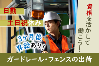 仕事内容 \\その資格、活かしてみませんか?3か月後には昇給あり!//☆時給1350円☆安定収入☆長期就業☆勤務地:野木町☆♪公共事業に関わるお仕事なので長期安定です♪ <仕事内容> ☆ガードレールやフェンスを製造している工場内でのお仕事です☆ <↓お仕事の流れ↓> 加工、塗装、梱包されたガードレールやフェンスが、クレーンやベルトコンベアーで運ばれてきます… ◎ガードレールやフェンスを所定の場所へおろす(玉掛け、クレーン作業) ◎搬出の為にガードレールやフェンスをトラックへ荷積み(玉掛け、クレーン作業) ◎その他部品を荷積み(部品等、重くないものを手積みすることがあります) ◎搬出時の伝票チェック (リストを見て商品をチェック、製品名などは担当者が教えてくれます) ◎他の倉庫へフォークを使って移動 (カウンターフォーク、リーチフォークを使う作業です) ※搬出する時間によっては残業になることがあります ※工場内での作業になります ※季節によって気温差はありますが、スポットクーラーやヒーターの準備があります 立ち作業です。 重量物を扱う(15㎏以上)ことがあります。 グループ作業でのお仕事です。 《職場環境》 男性が多い職場です。 シニア活躍中♪ スポットクーラー有り 工場内の作業になります、季節毎に温度差があります。(スポットクーラー、ヒーターがあります) ロッカー有り|休憩室完備 アピールポイント <仕事内容> ☆ガードレールやフェンスを製造している工場内でのお仕事です☆ <↓お仕事の流れ↓> 加工、塗装、梱包されたガードレールやフェンスが、クレーンやベルトコンベアーで運ばれてきます… ◎ガードレールやフェンスを所定の場所へおろす(玉掛け、クレーン作業) ◎搬出の為にガードレールやフェンスをトラックへ荷積み(玉掛け、クレーン作業) ◎その他部品を荷積み(部品等、重くないものを手積みすることがあります) ◎搬出時の伝票チェック (リストを見て商品をチェック、製品名などは担当者が教えてくれます) ◎他の倉庫へフォークを使って移動 (カウンターフォーク、リーチフォークを使う作業です) ※搬出する時間によっては残業になることがあります ※工場内での作業になります ※季節によって気温差はありますが、スポットクーラーやヒーターの準備があります 立ち作業です。 重量物を扱う(15㎏以上)ことがあります。 グループ作業でのお仕事です。 《職場環境》 男性が多い職場です。 シニア活躍中♪ スポットクーラー有り 工場内の作業になります、季節毎に温度差があります。(スポットクーラー、ヒーターがあります) ロッカー有り|休憩室完備 \充実した福利厚生/ ◎社会保険・雇用保険完備 ◎有給休暇有(6ヶ月経過後、10日付与)※規定あり ◎残業手当 ◎交通費支給(規定内) ◎確定拠出年金制度 ◎週払い制度(週3回対応) ◎お友達推薦制度あり(規定有り) ※1名につき3万円~10万円臨時給与として支給 ◎職場見学あり ◎車(マイカー)・バイク通勤可(無料駐車場あり) ◎食事持参可 ◎ロッカー・休憩室利用可 ◎福利厚生プログラム (宿泊、グルメ、ショッピングなど大幅割引が受けられる10万アイテムのメニューがあります。)
