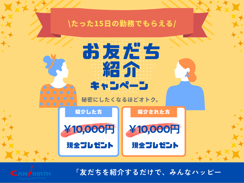 選考プロセス 応募ボタンより必要事項を入力のうえ、送信してください。 \\⭐応募後の流れ⭐// ①応募ボタンを押す ▼ ②担当者より、メールまたはお電話にてご連絡 ▼ ③登録面談の日程予約(WEB面談・出張面談・来社面談の中から選択可◎) ※当日予約もOK ▼ ④担当者と登録面談(ご希望の働き方などお知らせください◎) ※履歴書不要・私服でOK ▼ ⑤職場見学 ▼ ⑥双方合意のもと採用決定! ▼ ⑦お仕事スタート 【登録地】 キャニバース株式会社 所在地:埼玉県久喜市野久喜547-17-205 担当者:キャニバース株式会社 採用担当 電話番号:0480470305 メールアドレス:contact@canibirth.co.jp <応募について> WEBまたはお電話にてお気軽にご応募ください。 ■WEB応募の場合 24時間365日、いつでも受付可能です。 確認後、担当よりご連絡します。 ※WEB応募後、応募完了メールがすぐに届きます。 迷惑メールに振り分けられていないかご確認ください。 ■電話応募の場合 0480-47-0305までお電話ください。 受付時間は10時~17時となります。 ※繋がらない場合は時間をおいてお電話いただけますと幸いです。 ※オンライン面談をご希望の場合は、WEB応募をご利用ください。 <面接について> オンライン面談/来社面談/出張面談からお選びいただけます。 ご希望があればお申し付けくださいね。 面談ではお仕事に関するご希望のヒアリングや、担当からお仕事の説明を行います。 説明を聞いてからのキャンセル・変更も可能なので、まずはお気軽に面談へご参加ください。