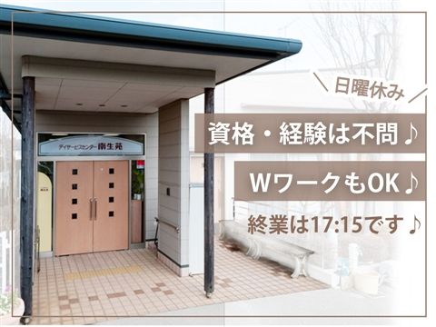 ■デイサービスセンター南生苑 ◎概要 平均介護度2.013と比較的自立度の高い方が多く、在宅生活を長く続けていただくためのサポートに力を入れています。 スタッフは管理者1名、相談員1名、看護師1名、介護職員4名以上の構成で利用者様を支えています。 【設立】1993年 【定員】定員35名 【営業日】月曜日~土曜日(祝日を含む) 【提供時間】9:45~15:45 ■施設管理者へのインタビュー ◎職場の特徴を教えてください。 在宅生活を支える機能訓練が強みです。個別運動に加え、専門講師によるピラティスや健康体操も実施し、身体機能の維持・向上を支援しています。 広い畑や果樹園があり、自然に触れ合える環境も魅力です。また、専属料理人による、栄養バランスにもこだわった美味しい食事を提供しています。 ◎最後にメッセージをお願いします。 自然豊かな環境と美味しい食事、多彩なレクリエーションが魅力の施設です。利用者様の在宅生活を支えるデイサービスで一緒に働きませんか? 社会福祉法人南生会について 船橋市で16ヶ所の事業所を展開する南生会は、地域貢献を理念に30年以上活動しています。 「今日という良き日のお手伝い、それは明日を生きるエネルギー」をモットーとして、公正・公平なサービス、暖かく人間味あふれる丁寧なケアを心掛けています。 利用者様ご家族をはじめ多くの皆様にオープンであることを心掛け、納涼祭・バザーなどの地域交流イベントや講演会などを実施し、地域福祉への積極的な働きかけも行っています。 ■概要 設立:1992年7月 【福祉施設】 ・特別養護老人ホーム南生苑 ・特別養護老人ホームみやぎ台南生苑 ・グループホームハピネス ・ひばりの丘デイサービスセンター ・デイサービスセンター南生苑 ・船橋市南老人デイサービスセンター ・松が丘在宅介護支援センター ・南生苑在宅支援センター松が丘 ・みさき在宅支援センター南生苑 ・豊富・坪井地域包括支援センター