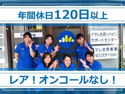 ■イマレ訪問看護リハビリステーションについて サービス提供地域は、ステーションから半径4km以内と日野市全域、一部八王子市になります。 年齢は52歳から101歳までの男女にサービスを提供しています。 比較的医療依存度が高くないご利用者様が多く、訪問看護が介入することで生活の水準を高めていただけるような方が多いのが特徴です。 そのため、生活に密着したケア(足浴、清潔ケア、お薬など)が中心ですので、ご利用者様一人ひとりと向き合うことができる時間を確保できます。 フットケアにも力を入れていますので、興味ある方や勉強したい方はぜひ! ■スタッフ体制 スタッフは看護師5名。理学療法士9名(デイサービスとの兼務含む)事務員1名の総スタッフ15名。 経験年数20年以上のスタッフから在籍しており経験年数が10年前後のスタッフが中心です。 ■訪問について ・訪問件数:1日4~5件程度 ・訪問方法:車 ・訪問時間:1件あたり30分~60分 移動時間は基本1件あたり10分~15分以内になるように調整しています。 ・記録方法:タブレット 1人1台専用タブレットを貸与しており、カルテ記入は現場で完了できます。 ご利用者様のお宅で情報確認や共有も可能です! ■スタッフVoice 【 スタッフインタビュー 】 ・各スタッフが利用者様・スタッフのことを考えて提案する姿勢があります ・急なお休みにもスタッフ間で協力してフォローしあえています ・残業は少なく、定時で退社できることが多いので助かります ・看護師、作業療法士、理学療法士に限らず、同場面で、多職種(アスレティックトレーナーや介護福祉士、健康運動指導士、リハビリ助手など)が積極的に利用者様に接し、各々の視点から利用者様の希望や抱えている問題へのサポートやアセスメントができています ・今まで病院勤務であり、退院後の状態を知ることができなかったが、生活に戻った利用者様に対し、残存機能をの維持・向上するために必要な介入や今後の生活環境に即した動作の再獲得や提案が、しっかりと時間をかけて実施できます ・利用者様の現状の問題点に対するアプローチはもとより、今後の生活スタイルを見据えた介入やご家族との関係性にも配慮し、アプローチができます ・リアルタイムに他職種によるサポートが得られ、意見交換をしながら実務に臨めます ・訪問看護リハビリ事業とデイサービス事業の連携を密に行い、利用者様に対し切れ目なくサポートができます ・在宅で過ごしたい利用者様や家族の方に訪問することで安心感をもっていただけたり、笑顔をみるとうれしいです ・上司や同僚には相談しやすくアドバイスや指導をしてもらえるので心強いです ■カンパニーマイル制度について 日頃の感謝などをマイルという仕組みを使って、スタッフ間で送り合っております! 溜まったポイントはコンビニで買い物したり、某ギフト券に換えたり、オリジナル商品と交換したりできます! ■常勤希望者限定!事前の給与試算可能 常勤限定で、見学や面接の前にあなたのご経歴やご経験などをお伺いし、給与試算をさせていただくことが可能です。 事前に自分のおおよその給与を把握することが出来ますので、安心してご応募が可能となります。 お気軽にご相談ください。 <給与試算をするための流れ> ①まずは気になる求人ページからエントリー下さい。 ↓ ②当法人担当者からの連絡に対して面接前に給与試算希望とお伝え下さい。 ↓ ③当法人担当者へ、あなたのご経歴や前職(現職)の給与など、試算に必要な情報を教えていただきます。 ↓ ④お聞きした経歴などを当法人の規定に照らし合わせ、どのようなお給与になるか、おおよそで提示します。 ※ただしあくまで概算となります。正確な給与に関しては面接後に再度提示しますのでご了承下さい。 ↓ ⑤提示されたお給与で納得されたら面接にお進み下さい。 ■就職お祝い金支給あり 当サイトより直接応募していただき、採用された方にお祝い金を支給しております♪(詳細は面接にて)