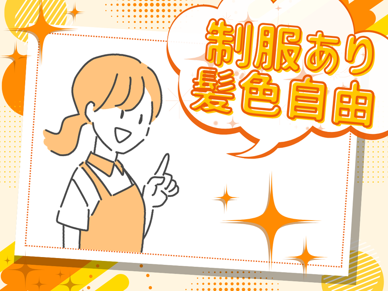 求めている人材 *未経験歓迎! バイトデビューも大歓迎! *高校生OK!大学生歓迎! *ブランクOK! パート復帰の方も活躍中! *友達との応募も歓迎! ー こんな方にもピッタリ! ー ・接客バイトをしたい方 ・コンビニ・スーパー・ドラッグストア・ 百貨店などでの接客・販売・レジ経験 を活かしたい方 ・ホールスタッフの経験ある方 ・飲食店・飲食業で働いてみたい方 ・居酒屋・カフェ・喫茶店などでの 勤務経験も活かせます! 一一一一一一一一一一一一一一一 幅広い世代が活躍中の アットホームな雰囲気です 一一一一一一一一一一一一一一一 初めてのバイトや 未経験スタートの方も活躍中★ 幼稚園くらいのお子さんから 成人して手の離れたお子さんを お持ちの方まで働いています◎ 明るくて気さくなNさんや 几帳面できれい好きなAさんなど みんなであなたをサポートしますから 安心してくださいね♪