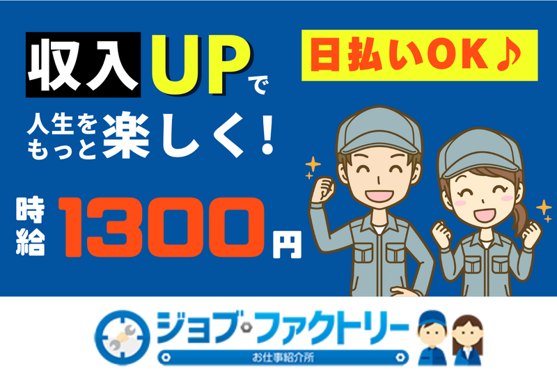 応募について ≪お仕事開始までの流れ≫ ●応募(メールor電話で受付中) ●WEBより面談予約(応募から5分以内で予約URLが届きます) ●登録面談にて弊社スタッフにご希望のお仕事条件などを伝えてください。 ●担当者と一緒に職場見学に行きます。 ●条件が合えば、即日からお仕事スタートも! ・登録は履歴書不要・来社不要!最短当日OK! 面談は以下の方法からお好きな方法をお選びいただけます! 希望のお仕事によっては来社いただく場合もあります。 伊勢崎営業所 群馬県伊勢崎市連取町3062-12 リモート面接 自宅でできるWeb面談・電話面談も受付けています。 出張面談も随時開催中!! お近くの会場をご案内いたします! まずはお気軽にお問い合わせください。 伊勢崎採用係 応募受付先電話番号:0270-40-5771 応募方法 web応募 「応募する」ボタンより必要事項を入力の上、送信して下さい。 確認後、担当より改めてご連絡をさせていただきます。 電話応募 「ジョブファクトリーを見た」とお伝えください。 その際に「お仕事NO.」言っていただけるとスムーズにご案内ができます。 ※ 繋がりにくい時は再度おかけ直し下さい。