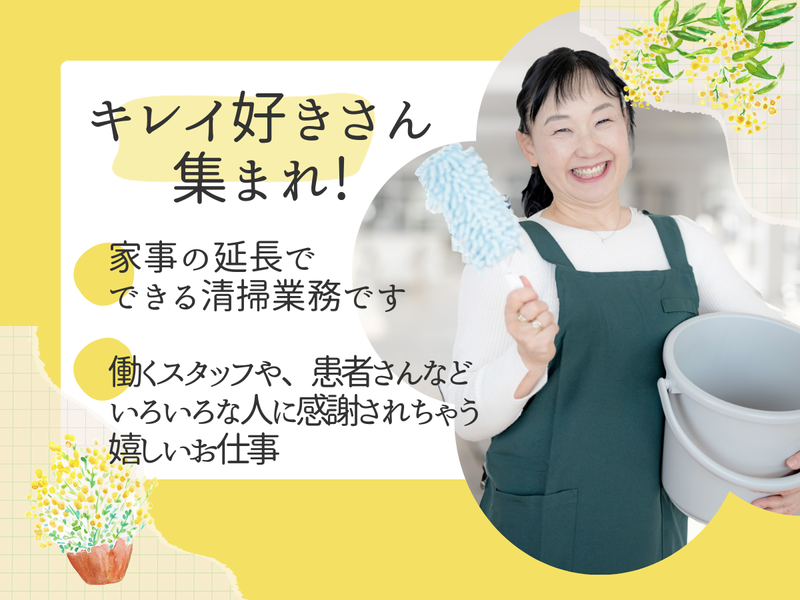 仕事内容 / 勤務時間が選べるから あなたの都合の 良い時間だけ働ける! \ :・:・:・:・:・:・:・:・:・:・:・:・:・:・:・:・:・:・:・ ✅弁天町駅直結でラクラク通勤 ✅平日朝や昼、土日祝の短時間でOK ✅短時間なのでスキマ時間にできちゃう! ✅未経験でもしっかりフォロー :・:・:・:・:・:・:・:・:・:・:・:・:・:・:・:・:・:・:・ お電話でのお問い合わせ、 ご応募も受け付けております◎ TEL:06-6223-5450 ✧・✧・✧・✧・✧・✧・✧・✧ 【仕事内容】 大型病院内での清掃業務。 家事の延長でできるお仕事です! 【具体的には】 ◆床清掃(掃き・拭き) ◆ゴミ回収と分別対応 ◆共用部の簡単な拭き掃除 ◆備品配置の簡単チェック などをお任せします。 作業はチームで分担しますので 一人で抱え込むことはありませんよ♪ 難しい機械を使った清掃も ありません! ⭐スキマ時間を有効利用  ̄ ̄ ̄ ̄ ̄ ̄ ̄ ̄ ̄ ̄ ̄ ̄ ̄ ̄ ̄ 家事の合間や こどもが学校から帰ってくるまでの スキマ時間にできるお仕事です! ①平日5:00〜9:00のうち 3時間〜勤務◎勤務時間は応相談! ②平日12:00〜17:00(5時間勤務) ➂土日祝は7:00〜14:00のうち 5時間〜勤務◎勤務時間は応相談! ⭐シフトは柔軟調整!  ̄ ̄ ̄ ̄ ̄ ̄ ̄ ̄ ̄ ̄ ̄ ̄ ̄ ̄ ̄ 週3日~OK! 出勤日数やお休みは お気軽にご相談ください! 「この日は子供の学校行事で…」 「家族の介護が必要で…」 といったこともお気軽に! ⭐未経験でも安心の理由  ̄ ̄ ̄ ̄ ̄ ̄ ̄ ̄ ̄ ̄ ̄ ̄ ̄ ̄ ̄ 入社後は先輩が 現場でマンツーマン指導。 消毒や手袋の着用方法も 丁寧にお教えします! 困ったときは同じ病院内の 先輩にすぐ確認できるので、 未経験でも安心してスタートできます。 ⭐50代60代70代主婦活躍中  ̄ ̄ ̄ ̄ ̄ ̄ ̄ ̄ ̄ ̄ ̄ ̄ ̄ ̄ ̄ 数名で出勤して、 それぞれ各持ち場を回ります。 先輩スタッフが同じ病院内にいるので 分からないことはスグ確認できます! 慣れればコツコツモクモクと 自分のペースで働けます◎ ⭐快適に働けるのは…  ̄ ̄ ̄ ̄ ̄ ̄ ̄ ̄ ̄ ̄ ̄ ̄ ̄ ̄ ̄ 弁天町駅直結で 地下鉄・JRからの移動がラク♪ 専用の休憩室や 冷暖房完備の控室あり。 感染症対策も整っており 快適に働ける環境です♪ / ✨先輩のコメント!✨ (*^^*)(50代・主婦パート) \ 先輩も優しい方ばかりで 未経験の私に消毒のやり方から 丁寧に教えてくれました。 体を動かすお仕事ですが、 隅々までキレイにして 仕上がりを褒められると 「やった!」とやりがいを感じます! 決まった時間に働けるし、 シフトが削られることもないので 収入面も安心です。