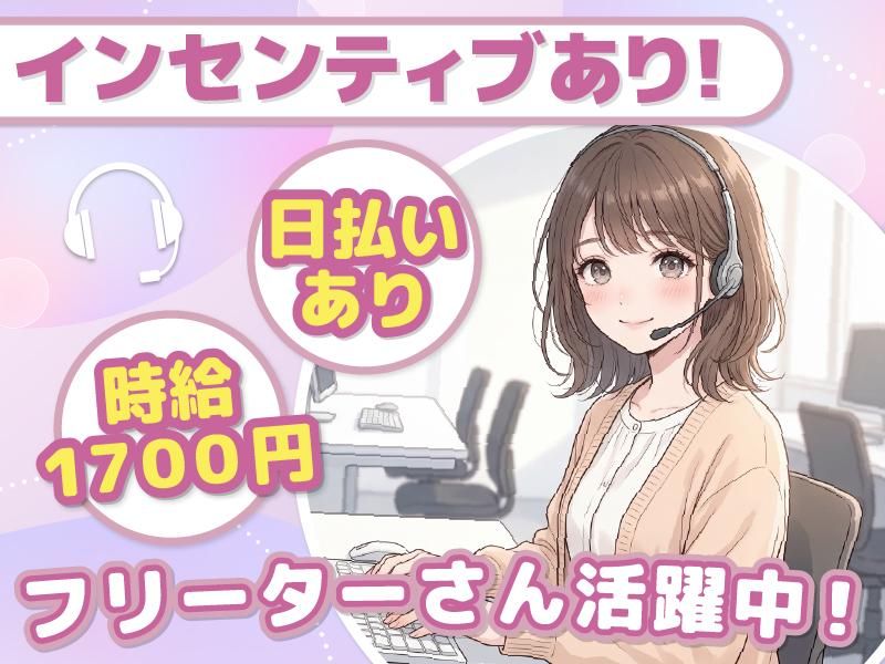 仕事内容 / コールセンターNEW OPEN! 設立以来「2回目」の募集です* \ こちらは「総合窓口株式会社」です。 当社の求人をご覧いただき誠にありがとうございます✨ 当社は札幌でコールセンター業を営んでおり、 この度新規事業の立ち上げに伴い、 新たなメンバーの募集を行っています! 先月当社設立以来「初めて」募集を行いましたが、 ありがたいことに多数のご応募をいただきました! (本当に感謝の気持ちでいっぱいです・・・!) でも、まだまだ新メンバーを大募集中!! 既に新人さんの入社が決まっているため、 ほぼ同時スタートの仲間が約15名ほどいます。 安心してお仕事を始められますよ✨ まずはお仕事のことや当社のことなどを 簡単にご説明をさせていただきますので、 興味がある方はそのままぜひ、下記内容をご確認ください! 【information】[1]お任せするお仕事は 意外と簡単>コールセンター未経験も安心! お電話でご案内をするお仕事です! 難しい知識やスキルは不要! トークスクリプト(台本)に沿ってご案内するだけ! まずはハキハキと元気に喋ることを意識してみればOK! (最初は恥ずかしいかもですが、スグに慣れます笑) >難しい対応が発生したら・・・ 社員にパスでOK!!! 分からないことがあっても、 すぐに先輩スタッフがお教えします! 【information】[2]未経験も安心のサポート体制 社員のスタッフが2名以上在中しているため、 分からないことや困ったことがあったら、 すぐにフォローをするので安心です! 設立以来当社で頑張ってくれている 頼もしい社員がほぼマンツーマン体制で アルバイトさんのサポートをしますので、 コールセンター未経験の方も お気軽にご応募ください。 >社員以上に???、頼れる存在もいます! *人に相談するのが恥ずかしい、苦手 *仕事のコツをもっと知りたい とお考えの方のために当社では、 AIとSNSを組み合わせたお悩み相談用の 専用システムを導入しました! SNSのチャット画面で質問や悩みを送信すれば、 自動で答えが返ってくるので、 24時間いつでも悩み相談や質問ができますよ! このシステムを活用すれば不安ともオサラバ! ご案内のコツも学べてスキルUP>収入もUP!と、 頑張るスタッフさんの強い味方です* 【information】[3]当社のオススメポイントは [1]頑張りはインセンティブで還元! ご案内をして興味を持っていただけた方の人数に応じ、 +インセンティブで給与に加算されます! 普通に働いても超高時給なのに、 さらに稼げちゃうチャンス!! [2]急な出費も安心!日払いあり! 日払い・週払い制度があるため、 急に飲み会や旅行に誘われても安心です⭐ 冬休み中に遊びすぎて 金欠でめちゃくちゃ大ピンチ・・・ なんて方は即ご相談ください! (日払い・週払いは規定有) [3]シフト自由で働きやすさバッチリ! 週1日~、1日3時間~OKなので、 掛け持ち先や学校との両立もラクラク! 高時給バイトだから短時間勤務でも、 月収8万円以上可能!! *時給1700円/週3日(月12日)/1日4時間勤務で換算 フルタイムでガッツリ勤務の場合は、 月収29万円以上も実現可能!! *時給1700円/週5日(月22日)/1日8時間勤務で換算 ⭐+インセンティブでそれ以上稼げるチャンスも・・・! ⭐月80時間以上勤務できる方は特に歓迎します! 他にもオシャレ自由や交通費全額支給など、 メリット満載のアルバイトです!