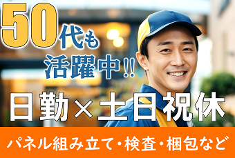 仕事内容 ★オープニングスタッフ募集★大企業で雇用安定!(^O^)空調完備でお仕事中も過ごしやす~い♪シンプル作業がメインだから…負担も少なめ・長く続けられる! <仕事内容>【イチオシ案件】 【業務用空調機のパネル組立、検査、梱包及び不随作業】 ◎ゆっくり…ゆっっっくり…進むラインでの作業◎ 上流~下流まで、それぞれの持ち場について作業していただきます。 ・パネル組立 インパクトドライバーを使ってネジ打ち ・検査 パネルに曲がりがないか・引っ掛ける爪が割れていないか等のチェック ・梱包 下流でパネルをダンボールへ梱包、ラックに乗せる その他、仕上げ作業やシール貼り等の作業もあります。 ライン作業です。 立ち作業になります。 グループ作業もござます。 《職場環境》 男女共に活躍中の職場です。 外国籍の方活躍中♪ 冷暖房完備なため、夏は涼しく、冬は暖かいです。 ロッカー有り|休憩室完備|売店有り アピールポイント <仕事内容>【イチオシ案件】 【業務用空調機のパネル組立、検査、梱包及び不随作業】 ◎ゆっくり…ゆっっっくり…進むラインでの作業◎ 上流~下流まで、それぞれの持ち場について作業していただきます。 ・パネル組立 インパクトドライバーを使ってネジ打ち ・検査 パネルに曲がりがないか・引っ掛ける爪が割れていないか等のチェック ・梱包 下流でパネルをダンボールへ梱包、ラックに乗せる その他、仕上げ作業やシール貼り等の作業もあります。 ライン作業です。 立ち作業になります。 グループ作業もござます。 《職場環境》 男女共に活躍中の職場です。 外国籍の方活躍中♪ 冷暖房完備なため、夏は涼しく、冬は暖かいです。 ロッカー有り|休憩室完備|売店有り \充実した福利厚生/ ◎社会保険・雇用保険完備 ◎有給休暇有(6ヶ月経過後、10日付与)※規定あり ◎残業手当 ◎交通費支給(規定内) ◎確定拠出年金制度 ◎週払い制度(週3回対応) ◎お友達推薦制度あり(規定有り) ※1名につき3万円~10万円臨時給与として支給 ◎職場見学あり ◎車(マイカー)・バイク通勤可 ◎制服貸与 ◎冷暖房完備 ◎食事持参可 ◎社員食堂あり ◎ロッカー・休憩室利用可 ◎売店あり ◎福利厚生プログラム (宿泊、グルメ、ショッピングなど大幅割引が受けられる10万アイテムのメニューがあります。)