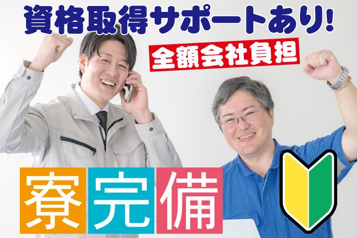 未経験OKの正社員募集! 日祝休み/長期休暇あり/寮完備 全額会社負担の資格取得サポートあり!