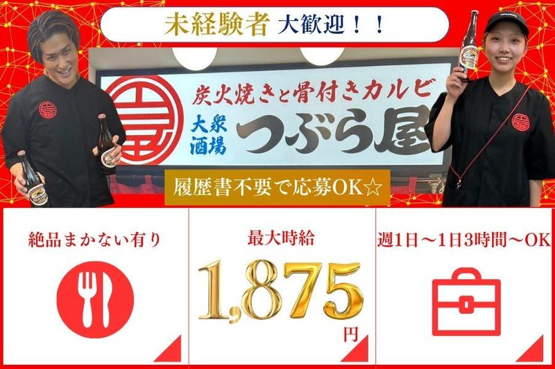 仕事内容 \昭和レトロ×名物「骨付きカルビ」の人気店/ 放課後や週末だけでもOK!元気いっぱいの大将と仲間たちと一緒に、楽しく働こう✨ 学歴経験不問・フリーターもOK! 『履歴書不要』で未経験でも安心スタート✨ 【具体的なお仕事内容】 ・簡単な清掃 ・簡単な仕込み作業 ・盛り付け ・調理 ・ドリンク作り ・オーダー取り ・料理の配膳 等 バイトデビューや飲食未経験でも大丈夫! 先輩スタッフが一から丁寧に教えてくれるので安心です✨ 学校帰りや週末だけの勤務もOKで、友達と一緒に楽しく働きながら成長できます! お店のモットーは『お客様に長く愛されるお店』。 みんなで一緒にお店を盛り上げて、楽しい時間を作っていきましょう!