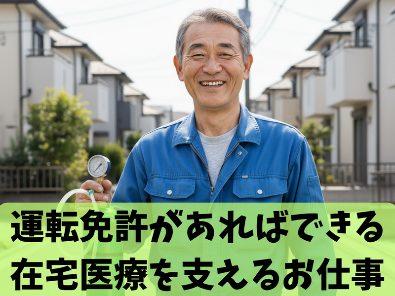 仕事内容 ✨医療の知識不要! ✨営業行為は一切ナシ! * 医療機器のサービススタッフ募集! * 長年の運転経験を活かし、社会に貢献できるやりがいある仕事を始めませんか? <お仕事内容> ご家庭でお使いの医療機器の納品や引取が主なお仕事です。 その他、小型ボンベの配送といった業務もお願いします。 業務に慣れていただくまで、先輩スタッフが同行いたしますのでご安心ください! 取り扱う機器やメンテナンス方法などもイチからしっかり教えます! ✨営業行為は一切ナシ!✨ 普通免許(AT限定可)があればOK! 医療に関する専門知識や資格、経験も必要ありません。 正社員登用制度もあるので、将来的にキャリアアップしたい方にもオススメです! ✨長年の経験を活かしたい方、大歓迎✨ 「リタイアしたけれど、まだ社会との接点を持ちたい」 「運転経験が豊富なので、それを活かせる仕事がしたい」 「人の役に立つ、やりがいのある仕事がしたい」 そんな方々が多数活躍中です。定年後のセカンドキャリアを応援します! ✨日々、やりがいを感じられる仕事です✨ 家庭用の医療機器や、医療用の小型ボンベなどを扱う当社。 メンテナンスに伺った時に「ありがとう」の言葉をいただくことが多く、必要としてくれる方がいることを実感できます。 社会的意義を強く感じられる仕事です。 「せっかく働くなら、やりがいある仕事がしたい!」という方にもピッタリ! ”人の役に立ちたい・社会に貢献したい”と思う方、ぜひ当社で活躍してみませんか?