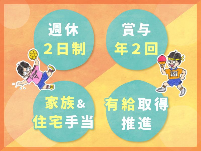 求めている人材 未経験の方大歓迎! 第二新卒も歓迎です! 営業の先輩について、 仕事を覚えていって下さい。 ※要普通自動車運転免許 (AT限定可) <こんな方を歓迎> ◆人と話すのが好き ◆子どもと接するのが好き ◆スポーツが好き ◆地元で働き続けたい ◆正社員として安定したい