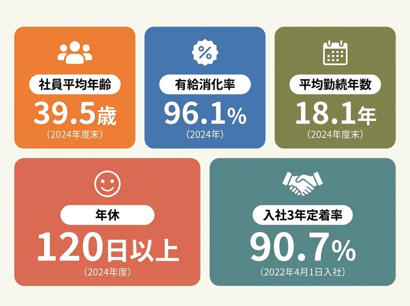職場環境 喫煙所:なし(敷地内全て禁煙) 本社:全面禁煙 現業:2028年度より全面禁煙