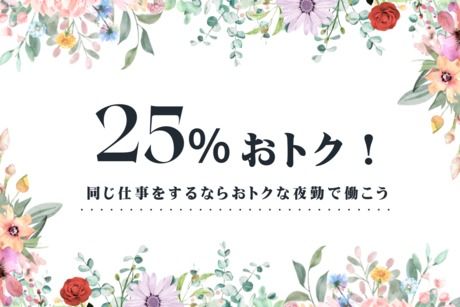 資格 こんな方におすすめです! ・春から心機一転新しいお仕事を探している方 ・夜型で昼夜逆転しがちな方 ・夜勤でしっかり稼ぎたい方 ・決まった生活リズムで安定した働き方をしたい方 ・人混みが苦手で、落ち着いた環境で働きたい方 ・コツコツ作業が得意な方 ・土日休みのお仕事をお探しの方 志望動機は問いません(*‘∀‘) 年齢の条件と理由:例外事由2号・18歳以上(労働基準法)