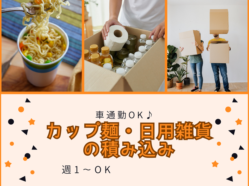 カップ麺や日用品商品の仕分け・積み込み作業