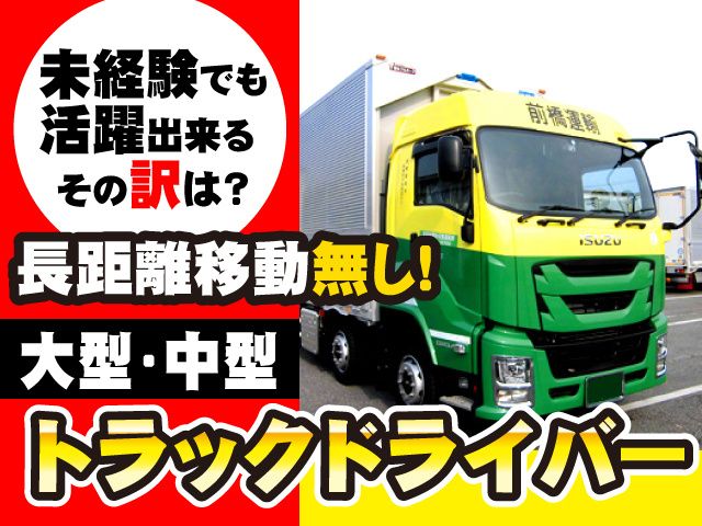 仕事内容 <大型・中型トラック運転手募集> 最初は4t車からスタートし、 慣れたら大型トラックの運転を お願いいたします! 【募集職種】 大型・中型トラックドライバー ※最初は中型(4t車)から勤務スタートです。 【仕事内容】 大型トラック又は4tトラック(中型トラック)で 部品の配送をお願いします。 ※食品・食料の配送はありません。 具体的には… 配送先へのトラックの運転業務 ↓ 配送先到着後はパレットでの 積み降しがメイン作業になります フォークリフトを使用して、 荷物の積み上げの作業もお願いします。 (フォークリフト免許が無い方もご相談下さい) ↓ 配送完了後、次の配達先へ向かいます 【輸送エリア】 群馬県内及び関東一円 【ココがPONT!】 昇給年1回あり 賞与年2回あり 配送エリアは近距離から中距離! 未経験スタートの方も安心です! フォークリフト免許を活かせます! ※免許が無い方もご相談ください 積み降ろしはフォークリフトなので 身体の負担が少なくお仕事できます 基本、日曜日はお休みです! プライベートも充実できます <ドライバーデビューしたい方!> 運転免許取得間もない方であれば、 まずは先輩方のサポートからスタート! 近距離~中距離なので心の余裕を 持って仕事を学びながら、徐々に ステップアップしていけるので安心です しっかりと育て上げますので 未経験の方もお待ちしてます。 《 待遇なども充実していて安心です 》 昇給年1回、賞与年2回、社会保険完備と 安心して働けるのも魅力です! 基本、日曜日がお休みなので家族や友達 との時間も変わらず確保できるので プライベートの充実もばっちりです! <各種免許や経験が活かせます!> まずは中型トラックから始めて頂きますので ブランクのある方でも始めやすい! 大型トラック又は中型トラックの 運転経験をお持ちの方! 新しい環境で挑戦してみませんか! 運転免許は必須ですが、 フォークリフト免許は応相談もOK! チャレンジをお待ちしております。 ご応募お待ちしております!