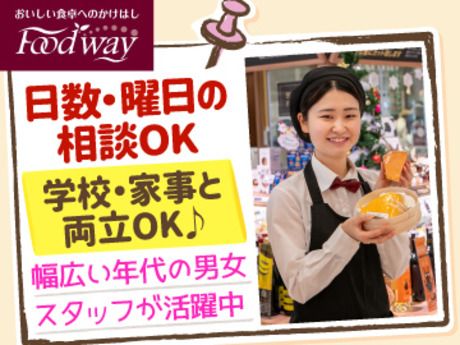 職場環境 【従業員構成】 10代・20代・30代・40代・50代・60代の男女が活躍中! ▼みんなに聞いたフードウェイの魅力POINTをご紹介します♪ (1)時給が高めで稼ぎやすい! (2)シフトの融通がきく♪ (3)日数・曜日で時給がUPする! (4)社割で家計が大助かり♪ (5)研修が丁寧で未経験でも安心◎ 【職場の雰囲気】 協調性がある 立ち仕事 お客様との対話は多い 長く働ける 自分の都合に合わせやすい 知識、経験不要