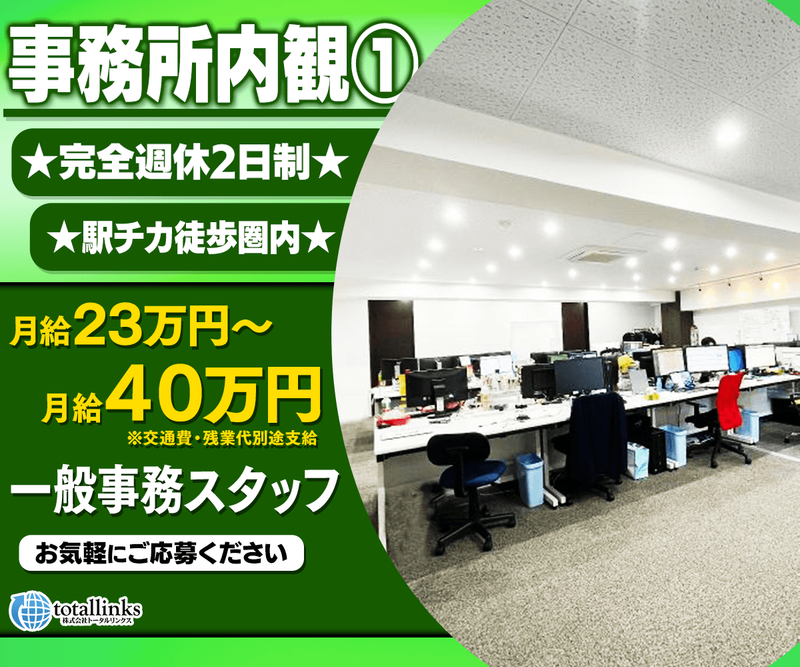 アピールポイント: ★週5日間・完全週休2日制★ 週5日間のフルタイム勤務での募集になります! シフト制で完全週休二日制となるため、 プライベートも充実させることが可能です! ★電話、対人が苦手でも大丈夫★ お客様対応はLINE・メールのみ。 落ち着いて文章で対応できるため、 「電話対応が不安…」という方でも安心です! ★未経験でも安心シンプルで始めやすい★ 現在活躍しているスタッフの多くが 事務未経験からのスタートです。 業務はマニュアル完備で、 テンプレートを使った対応や 決まった手順で進める作業が中心。 コツコツ進めるシンプルな業務なので、 「事務が初めて」という方でも 安心してスタートできます!