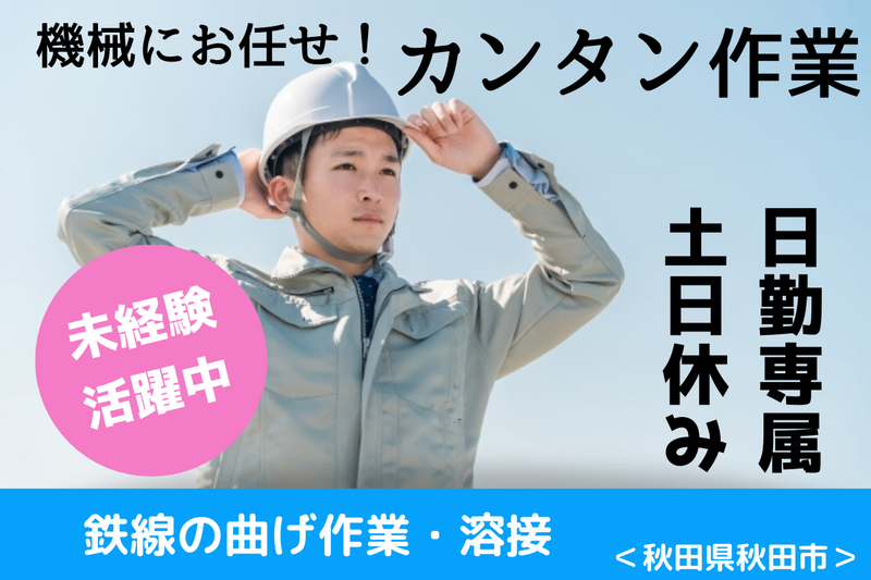 仕事内容 ○20・30・40代活躍中、男性活躍中 ○未経験・初心者活躍中 ○日勤のみ、土日休み ○正社員登用あり ○駐車場完備、バイク・マイカー通勤可能 【 仕事内容 】 鉄筋を加工する工場でのお仕事です。 コンクリート製品の中に入っている 鉄線の曲げ作業や切断作業を お願いします。 具体的な作業内容は...▼ ■鉄線を曲げる、切断作業 材料を機械にセットしてボタンを押すだけ! メインお願いするのは曲げ作業です。 作業は機械がしてくれるので 覚えてしまえばカンタンです! ■自動溶接機に鉄筋を入れる作業 こちらはアシスタントとして お願いします。 作業で難しいことはありません! 分からないことがあれば、先輩スタッフが 優しく教えてくれます★ 材料の鉄線の長さは色々ありますが 1本あたりはそれほど重くありません♪ 束を運ぶことがあるので その時は10kg程の重さになります。 《 幅広い世代の方が活躍 》 ほとんどが未経験からスタートしており 安心して工場デビューできる職場です☆ 《 モクモク作業 》 「ライン作業は疲れた…」 そんな方にピッタリの工場です! 基本的に1人でモクモクと進めていきます。 もちろん分からない事があった時は きちんとサポートしあえる環境です! 《 プライベートと両立OK! 》 人気の日勤×土日休み◎ 自分の好きな事や 趣味との両立がしやすい職場です! 勤務帯や休みが充実している職場で プライベートを大切にしながら 働きませんか? 《 先輩インタビュー 》 スタッフTさん(男性:35歳) 1年前入社 以前はライン作業がメインの工場で 働いていました。 スピードに慣れず、1人でもできる作業を 探して転職をしました。 作業内容を聞いた時が難しいのでは?と 思いましたが実際に作業をしてみると 覚えてしまえば簡単でした。 モクモクと作業に集中できるので 自分にはピッタリの仕事です。 未経験からはじめているスタッフも多く 分からない事も聞きやすい雰囲気です。