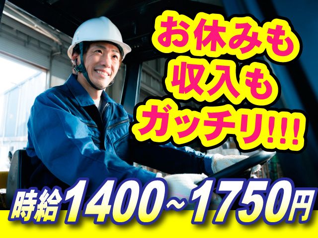 基本土日休み、残業ほぼなし。フォークリフト免許を活かして安定収入!週払いOK/2交替で稼げます