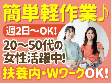 20~50代の女性活躍中!週2日~OK×希望時間OK!扶養内やWワークもOKで超融通◎