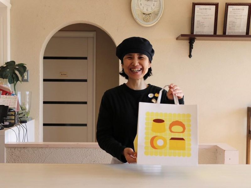 人気たまごスイーツ店でスイーツの製造