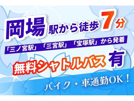アクセス 【最寄り駅】神鉄岡場駅から徒歩7分/「三ノ宮駅」「三宮駅」「宝塚駅」から無料シャトルバスあり♪/マイカー・バイク通勤もOK♪