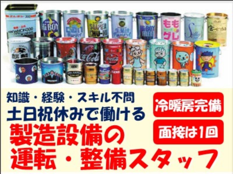 【雇用形態】 正社員 【職種】 土日祝休み/製造設備の運転・整備スタッフ 【仕事内容】 スチール缶を製造する機械や設備の整備(点検・保守・修理等)や機械の運転(製造機械の操作)等をお任せします。 工場内は冷暖房を完備しておりますので、春夏秋冬、快適にお仕事して頂けます! ー ・モノづくりが好きな方 ・製造業務に興味のある方 ・機械オペレーターとして働きたい方 ・工場内作業の仕事をお探しの方 ・機械工のお仕事に就きたい方 ・製造職でお探しの方 ぜひご応募ください! ー 男女スタッフ活躍中! パートも正社員も製造業務に携わっています。 製造関連の業務に携わっているのは正社員・パート込みで60名程度在籍しています。 正社員比率の方が多いので、入社後は先輩スタッフが1から丁寧にレクチャーしてきます♪ 子育てと両立しながら働く主婦さんも多数活躍中で、入社当時はパートとし入社したものの、「働きやすい!」「フルで働きたい!」という方が多く、正社員登用制度を使って正社員として勤務頂いているスタッフも多数在籍しています。 【仕事の特徴】 ★入社時期の相談可! 即日勤務希望の方は、 4月入社可能です。 もちろん5月入社や6月入社も可能なので ご安心ください。 在職中の方や転職希望の方も お気軽にご応募ください♪ ー ★未経験OK! 経験不問で働けるお仕事なので 第二新卒の方もご応募可能です! 異業種からの転職ももちろんOK! ブランクをお持ちの方も ぜひご応募ください! ー ★学歴不問で活躍可! 20代はもちろん、 30代、40代の方でも中途入社可能です! お気軽にご応募ください! ー ★無資格OK! 資格不問で働ける工場勤務のお仕事です。 資格が無くても 正社員として働けるお仕事をお探しの方、 ぜひご応募ください! 正社員,土日祝休み,残業月20時間以内,賞与あり,産休・育休取得実績あり,退職金制度あり,未経験者歓迎,業界未経験者歓迎,フリーター歓迎,第二新卒歓迎,主婦・主夫歓迎,フルタイム歓迎,ブランクOK,学歴不問,経験不問,長期,平日のみOK,転勤なし,中途入社5割以上,女性活躍中,車通勤OK,バイク通勤OK,自転車通勤OK,制服あり,交通費支給,食事補助あり,昼食補助あり,長期休暇あり,育休あり,40代も応募可,友達と応募OK,職場見学可,面接1回,即日勤務OK,管理職・マネジメント経験歓迎
