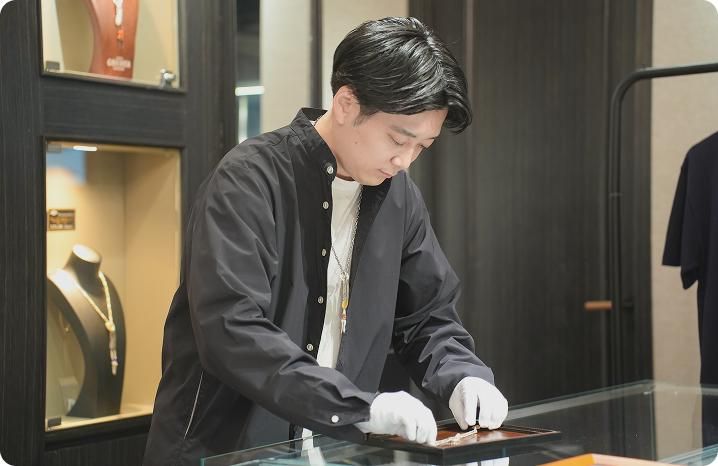職場環境 goro's(ゴローズ)やChrome Hearts(クロムハーツ)が好きなスタッフが集まっています。好きなものが同じだから、初対面でも話がすぐ合う。フレンドリーで風通しの良い職場です。服装・髪色は自由ですが、清潔感は大切にしています。