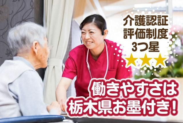 認知症対応型グループホームでの看護のお仕事です。丁寧な育成制度でキャリアも積めます アルバイト パート ~人を愛し 今日を楽しく 地域と共に~ 一人ひとりの利用者が、我が家だと思って生活していただける場所である為に 自宅ではあたり前であった食事を楽しむこと、寝る前にゆったりお風呂に入ること、 いつまでも自分らしく過ごしていただく為のサポートをしています。 ◎働きやすい職場づくり◎ 人材育成・雇用改善などに取組み、外部認証『とちぎ介護人材育成認証制度』で、最大レベル★★★を取得! 私たちは利用者様の笑顔だけでなく、一緒に働く職員たちの笑顔を大切にしています。