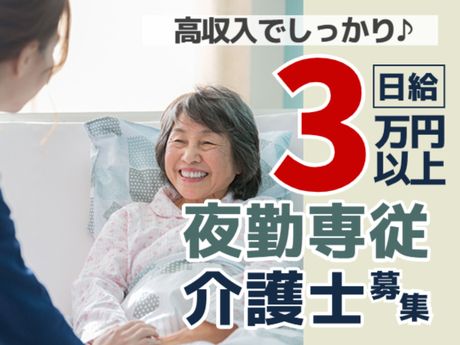 \実働15時間夜勤&高収入/日給3万円以上!週2回~|夜勤3名体制|複数駅~徒歩5分♪アクセス抜群