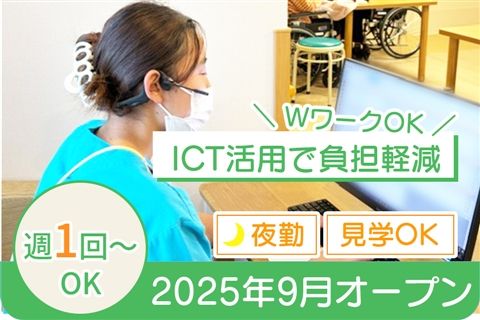 週1回から相談OK◎1夜勤2万9200円~3万0800円★WワークOK!2025年9月オープンの新しい施設!ICT活用で負担軽減【印旛郡・酒々井駅/京成酒々井駅・特養・介護職(シニア)、夜勤アルバイト】