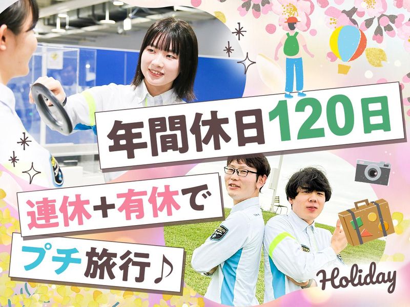 仕事内容 ★..━━━━━━━━━━━━━ 新生活を思いっきり楽しめる! そのヒミツとは…? ━━━━━━━━━━━━━..★ 「旅行が好き!を仕事にしたい」 「安全や警備に関わる仕事をしたい」 でもこんな不安も。 「転職考えてるけど経済面も不安」 「空港って大変そう・・・」 空港への憧れや抱える不安はみんな同じ! 先輩が転職して良かったことをご紹介♪ >>インタビューした先輩の前職は!? ホテル業・看護助手・警察官 自衛隊・携帯ショップの販売員など色々♪ ――――――――――――― 転職への経済面もサポート! ――――――――――――― ★社宅家賃“6ヵ月”無料! ☆入社支度金は“5万円”支給! ★社宅 ⇔ 関空までの無料送迎あり 賃貸の初期費用や引っ越し費用など、 そんな出費も最小限に♪ ――――――――――――― 無理なく働ける環境づくり! ――――――――――――― ★年間休日120日 ☆4勤2休の交代制勤務 ★月平均残業20h以内 【勤務例】夜勤なし・連休もあり! 月 火 水 木 金 土 日 ◯ ◯ ◯ ◯ ● ● ◯・・・ ◯・・・出勤 ●・・・公休 公休と合わせて有給取得もできて、 連休にプチ旅行だって出来ちゃいます♪ シフト制で朝早い日もありますが、 その分15:00で帰れたり、 11:00出勤があったり、 休憩もこまめに取れます ━━━━━━━━━━━━━━━━━ 《 どんなお仕事? 》 空港内セキュリティスタッフとして、 安全な旅をサポートしていただきます。 >>具体的には ■搭乗券の確認・受付案内 ■X線検査モニターの確認 └荷物内の危険物等のチェック ■金属探知機でのボディチェック ■手荷物検査 …など 経験と希望に応じて全国の空港へ 1ヶ月程度お手伝いにもいけます! 手当ももらえて旅行もできる一石二鳥です♪ 先輩の9割が未経験スタートのため、 異業種からチャレンジも大歓迎! 《 こんなチャレンジも… 》 経験と本人の希望に応じて、 全国の空港へお手伝いに行けます。 期間は1ヶ月程度で、手当も支給。 「旅行気分でさらなる経験を積みたい」 「たまには新しい刺激も欲しい」 など、挑戦しながらしっかり稼げます! ・。+。・+。・+・。+。・+。・+・ 一緒に次のステップとして 是非、関空デビューへ!!