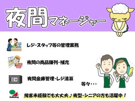 仕事内容 夜間責任者として幅広い経験を活かし、新しい挑戦をしてみませんか? \\夜型の方やシニアの方にもオススメ!夜間責任者募集!// 夜間でアルバイト・パートをお探しの方向けの重要ポジションです。 今までの社会経験を貸していただけませんか?? 夜間帯のリーダーとして、学生アルバイトさんの統括やリーダー業務の他、 夜間金庫管理・レジ管理業務、釣銭の管理など責任感が求められる業務をお任せしています。 レジを触る機会が多く、またコミュニケーション部分としてこれまでの社会経験が活かせるお仕事ですよ♪ 責任感が強い方や何事にも丁寧に対応したい方にピッタリです。 また、ミドル世代やシニアの方が現状多く活躍している職場なので年齢は気にせずご応募くださいね! もちろん20代のフリーターの方も活躍中◎ * \\夕方~夜間のお仕事なので、自分自身のリズムに合わせた働き方が可能// 接客と裏方の両方を経験でき、成長を実感できる環境が整っています。 業界未経験の方も経験豊富なスタッフがしっかりサポートしますのでご安心ください。 社員登用制度あり!アルバイト・パートから正社員を目指して頑張りたい方もご応募下さい。 「安定した働き方がしたい」 「お仕事に慣れてきたから社員を目指したい」 と考えている方に朗報です! 当社では社員登用制度があり、アルバイト・パートから正社員へのステップアップを全力で応援します。 やる気次第ではスーパー店舗スタッフとしての新しいステージへの挑戦が可能です! 「スタッフが働きやすい店舗」「お客様が楽しくお買い物ができる店舗」がコンセプトになっています。 お子様連れのお客様からシニアの方まで、様々なお客様がご来店されます。 どなたでも楽しく、便利にお買い物していただけるような工夫も、店舗スタッフのお仕事なんですよ。 また、安全性の確保・お客様の笑顔のため、楽しく美味しい商品を「新鮮に、安全に」お届けしています。 お客様とスタッフ、どちらも満足できるスーパーを目指しています。 弊社では幅広い背景を持つスタッフが活躍しており、これまでの社会経験を活かしてお仕事が可能です。 楽しい雰囲気の中で責任感を持って業務にあたることができますよ◎ 未経験大歓迎!しっかり丁寧にサポートするので、不安な方もご安心ください。 未経験大歓迎!丁寧な説明で安心してスタートできます。 スーパーでの店舗スタッフ経験が初めての方でも経験豊富なスタッフがしっかりとサポートします。 授業の合間に働きたい学生さんや一度リタイアを経験したシニアの方も無理なくお仕事をされています。 ぜひこれまでの社会経験を活かして新しい職場で挑戦してみませんか? スーパーマーケットを運営するハローデイ。全店を挙げて、社会貢献活動にも積極的に取り組んでいます。 店づくりにおいては、「見学者の多い店」として評価されているんです。店舗運営のみならず、募金・リサイクル活動も行い、地球にやさしい企業を目指しています。あなたもそんなハローデイの一員として働いてみませんか?