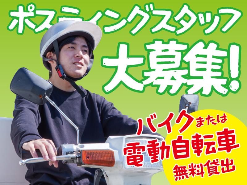 仕事内容 ┏ ───────────────── ┓ ✅がっつり働いてがっつり稼ぐ ✅副業としてお小遣い程度に ✅空いている日や時間だけ働く などあなたの生活に合わせて働ける! 月収35万円~45万円稼ぐスタッフも◎ ┗ ───────────────── ┛ 一般家庭や企業のポストに チラシやパンフレットを投函するだけ! ■どんなチラシ? →宅配ピザやファミレスのチラシ、 自治体の広報紙などです! ■配布方法は? →バイクや電動自転車を使用します! こちらは会社から無料貸出♪ ■配布エリアは? →営業所の周辺エリアになります! \⭐ここがおすすめ!⭐/ ――――――――――――― <<日払い始めました!>> 配布から3営業日後に支給します。 ※条件あり <<簡単シンプル作業>> ポストに投函するだけの簡単作業なので 覚えることはほとんどありません! <<しっかり稼げる>> 頑張った分だけ稼げるお仕事! 月収30万円以上のスタッフが多数! <<必須条件一切なし>> どなたでも気軽に始められるお仕事! 前職や経験は一切関係ありません◎