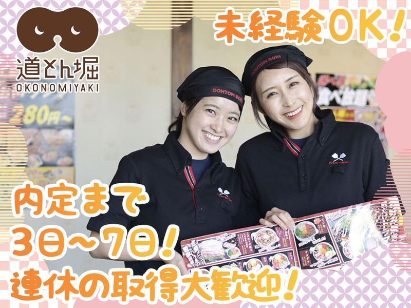仕事内容 【新着】正社員店舗スタッフ募集! ˚✧₊⁎ ⁎⁺˳✧༚˚✧₊⁎ ⁎⁺˳✧༚˚✧₊⁎ ⁎⁺˳✧༚ ✨未経験者歓迎! ✨食事補助&交通費支給♪ ✨髪色・髪型自由&ネイルOK!個性を活かそう! ✨店長及び店舗管理者大歓迎! ˚✧₊⁎ ⁎⁺˳✧༚˚✧₊⁎ ⁎⁺˳✧༚˚✧₊⁎ ⁎⁺˳✧༚ 《お仕事の詳細》 まずは下記の業務をおまかせ! ・お客様のご案内や会計、 配膳などのフロント接客業務 ・ドリンクやお食事などの 調理補助業務 ・開店・閉店準備業務 ・店舗の清掃業務 など *勤務に慣れてきたら 店舗管理業務も学べます! (希望を考慮します) ・アルバイト・パートスタッフの採用・教育 ・従業員のシフト管理 ・食材発注、在庫管理 \難しくない応募理由でOK、人柄重視です!/ 「お店の雰囲気が働きやすそう」 「お好み焼き店で働いてみたい」 など、単純な理由の志望動機でもOK! 自由な雰囲気のお店です。 お気軽に応募してください! 面接では志望動機や週何日希望、 勤務開始希望日などの質問をいたします! リラックスしてお越しください! 《働きやすさが第一です》 研修や先輩スタッフのフォローがあるので、 未経験でも大丈夫!やさしい方ばかりです! 疑問や分からない事などは いつでも気軽に相談してください! 《働くなら楽しく成長のある職場です!》 職種経験や業界経験は一切不問です! あなたのポテンシャルや働き方希望を重視。 書類の上では分からない、 あなたの魅力をぜひ当社にお貸しください! 「転職は初めて...」「未経験の業界...」 そんな風に不安な方もぜひご応募ください! あなたの魅力が引き出せるような面接が できれば嬉しいです! 《道とん堀のご紹介》 創業35年のお好み焼きレストラン https://dohtonbori.com/ お好み焼きチェーンのパイオニアとして、 日本、海外に店舗を出店しています。 焼肉やラーメン店といった業態にも進出。 若い世代も多く働いており、 どの店舗も活気に満ちていて スタッフ同士の仲の良さも魅力!