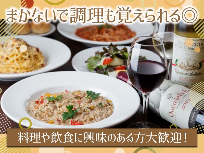 仕事内容 ✅週3~/1日4時間~で調整OK◎ ✅髪型髪色・ピアス自由! ✅Wワーク・フリーターさん活躍中! 「お疲れ様~!今日もありがとう!」 「まかない食べて昼から酒飲んでるやん~笑」 「この子めっちゃ頑張るし助かるんよ~」 そんなフランクなトークで場を和ませる 素敵なオーナーさんが営むイタリアン。 お客様は常連さんが多く、 本場イタリアで学んだオーナーの料理を いつも楽しみに来てくださいます。 「料理を覚えるのに夜はここで働こうかな」 当店にいらっしゃるきっかけは何でもOK! 「Wワークで夜は料理をしてみようかな」 「料理が好き」「料理を覚えたい」 「将来はお店を持ったりしたい」 そんな調理に興味深々なあなたに オススメしたい当店の調理補助スタッフ募集! =========== ≪具体的なお仕事は?≫ =========== ■調理補助 まずは ・切ったり、盛り付けたりの カンタン業務 ・ドリンクの準備 ・お皿洗い 等からスタート 慣れてきたら ・前菜やデザートの調理 さらに学びたい方には ・パスタやメインの調理 も段階的にお教えしていきます。 未経験の方・ブランクのある方も 先輩と一緒に少しずつ覚えていきましょう◎ ~・~・~・~・~・~・~・~・~ ✨希望に応じて学べるイタリアン✨ ✨ここだから叶う働き方をご紹介✨ ~・~・~・~・~・~・~・~・~ ≪経験や希望に応じた働き方を選択可能◎≫ ⇒調理の経験者さんは 前菜やデザートの調理から 本場のイタリアンを学ぶことも可能。 未経験の方も興味がある方は 調理補助のお仕事に慣れつつ イチから調理のお仕事について知れます。 もちろん 「料理が上手くなりたい!」 「美味しいパスタを作れるようになりたい」 そんな料理がお好きな方も大歓迎! 反対に 「将来は自分の店を持ってみたい」 「調理・料理人の道に進みたい」 そんな目標をお持ちの方も応援! 先輩スタッフさんは 「将来飲食関係の仕事に就こうと思ってて」 「自分の店を持つのにイタリアンも学びたくて」 そんな調理に関心ある方も多く、 それにこたえるようにオーナーさんが教えてくれます◎ あなたの興味や頑張りたいに合わせて お教えしていくので遠慮なくご相談くださいね◎ ぜひ一度当店にお越しください◎