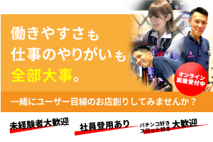 お仕事内容 【パチンコホールスタッフ】 パチンコホールでの接客業務を担当していただきます。具体的にはお客様のご案内、簡単な機械メンテナンス、店内の清掃など、未経験の方でも安心して始められる内容です。しっかりとした研修制度が整っており、先輩スタッフのサポートが受けられます。