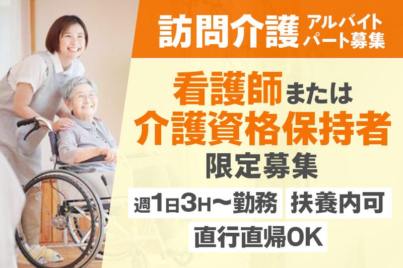 【アピールポイント】 \資格を活かして高収入!/ 訪問介護をパートアルバイト募集 ※介護福祉士/看護師(准看)いずれか資格保持者 ■時給2000円~ ■週1~OK/フルタイムOK ■直行直帰OK!出社は月1! ■フィットネス手当あり