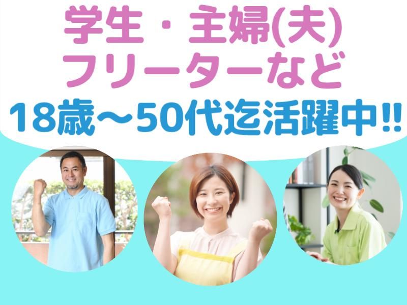 求めている人材 *資格不要 *未経験OK *経験者歓迎 *主婦(夫)活躍中 *フリーター活躍中 *専門学生活躍中 *大学生活躍中 *シニア活躍中 *ミドル活躍中 *18歳~50代まで幅広い世代の男女活躍中 *扶養内OK *副業OK