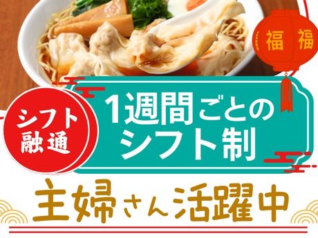 仕事内容 ((とにかくシフトが柔軟です))★お仕事は初日から即戦力になれるモクモク作業がメイン★ <ココがおすすめ!総まとめ> 小さなお子さんがいるママさんも活躍中で、 「幼稚園からお迎えの連絡が…」 なんて日常茶飯事。 スタッフも慣れっこです笑 みんな困ったときはお互い様の気持ち! 新人さんが言いにくいなんてこともありません◎ →出勤頻度が少なくなっても雇用はしっかり守ります! ぜひ面接の際にご相談くださいね。 ★夏休みなどの長期連休も<シフト減・調整可能>! 【シフト例】 ・9-14時 ・10-15時 ・11-16時 ・12-18時 ・10-18時 他の時間帯ももちろん相談OK *接客ナシ!お喋り苦手でも大歓迎♪顔バレもなし! 久々にパート復帰!なんて方にも丁寧に お教えします♪ →仕込みのポジションなので、注文が入ってバタバタ緊張… なんてことがないのもメリットですね♪ 仕事内容のこと(週2・4h~OK!) <具体的には> ・仕込み(野菜カット、ワンタンを包むなど) ・小鉢の盛り付け ・汁物の調理 ・揚げ物の下準備 など 簡単な仕込みメイン♪ 午前中はモクモクとワンタンを包んだり、 調理補助などをお任せ◎ 「後は焼くだけ」「揚げるだけ」「器につぐだけ」の 直前まで状態を整えるだけ♪ 接客なし!作業に集中したい方にピッタリ! 一緒に働くスタッフのこと 幅広い年代のスタッフが 協力しながら活躍中! 主婦さんが多く、 高校生・専門学生さんも在籍中。 育児や介護、通院の関係でお休みする時は 「お互い様」の気持ちで支えあっています◎ スタッフ同士で助け合う姿もよく見られ 休憩中には家庭の話や趣味のこと 和気あいあいと雑談していますよ♪ シフトのこと ★ランチタイムや土日勤務は優遇! ・平日のみ ・週末のみ ・土日祝のみ ・ランチのみ ・17時から、18時から ・スキマバイト など シフト自由で働けます。 1週ごとの自己申告シフト制なので、 休みも取りやすい環境です♪ お盆や年末年始はお休みしたい なんてご相談もOK! スタッフインタビュー ≪30代主婦さん≫ 子どもが保育園に入ったので、久しぶりに働くことに。 とはいえ、今は無理なく働きたいな…と思っていたところ、 同じように主婦さんが働いているこちらを発見。 子どもの風邪や体調不良の心配がかなりあったので、 シフトをここまで融通してくれるのは本当にありがたいです。 あと、お店もおしゃれでそこにも惹かれましたね♪(飲茶がおいしい!) 仕込みなので、あがり症の私も 楽しくお仕事できていますよ。