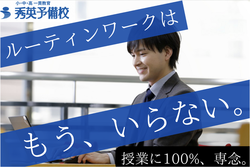 仕事内容 【“教える仕事”を、もっと自分らしく。 キャリアもプライベートも諦めない。】 ◆塾業界はブラック? 秀英は違います。 ━━━━━━━━━━━━━━━━━━━ ”教育業界だから”を、言い訳にしない。 勤怠システムで勤務時間を1分単位で管理。 サービス残業なんて、ありえません。 アルバイト講師の協力を得ながら、 支え合う体制も整えています。 ◆教壇経験が、キャリアの追い風に。 塾業界で飛躍する教員出身者、続々。 最短1年で教室長へ。 ━━━━━━━━━━━━━━━━━━━ 当社では、年齢や社歴に関係なく、 キャリアアップが可能。 経験・能力を正当に評価しスキルに 見合ったポジションと待遇を用意します。 教壇で培った指導力や教育への情熱を、 今度は塾業界で活かしてみませんか? 〈複線型キャリアパスを採用〉 各校舎のマネジメントを担当する管理職コース 優れた授業を追求する専門職コース あなたの「強み」と「目指す未来」に合わせたキャリアを選択出来ます ◆完全分業制で授業に100%集中。 ━━━━━━━━━━━━━━━━━━━ 教材作成・事務作業は専門部署が担当。 トップ教師による全教科・全レベルの映像授業を完備し 授業準備の効率化も実現。 部活動や生徒指導に追われることもありません。 生徒と向き合う時間に全力を注げます。 ┏━━━━━━━┓ ◆ お仕事内容 ◆ ┗━━━━━━━┛ 小学生から中学生を対象とした黒板を使った 集団授業と、生徒募集活動をお任せします。 担当科目は、 英語・数学から1教科、 理科・社会から1教科 ご希望する計2教科を指導して頂きます。 ■具体的には・・・ ・教材研究 ・授業の予習 ・集団授業 ・生徒の出迎え、見送り ・校舎内掲示 ・質問対応 ・生徒、保護者との面談 ・電話応対 ・コミュニケーションアプリで保護者との連絡 ・生徒募集活動 ・校舎内掲示 ┏━━━━━━━┓ ◆ 1日の流れ ◆ ┗━━━━━━━┛ 13:30 出社・ミーティング 14:00 授業準備 15:30 休憩 16:30 生徒出迎え・声掛け・デスクワーク 18:20 授業 21:40 授業終了・生徒への声掛け・見送り 22:30 終業 【「好き」を仕事に。ずっと、ここで。】 プロとして輝き続けるための環境。 ━━━━━━━━━━━━━━━━━━━ ◆年間休日115日/長期休暇あり しっかり休んで、授業の質も高める。 自己研鑽の時間も確保できます。 ◆月平均残業20時間/有給取得実績◎ プライベートも大切にできるから、 仕事への情熱も燃え続けます。 ◆勤続年数12年 - 平均年齢37.1歳 「秀英予備校は、人がいい」 「働きやすさを追求する社風」 長く働ける環境がここにはあります。 ◆授業・校舎見学歓迎!選考前に何でも相談OK ━━━━━━━━━━━━━━━━━━━ 選考前の不安や疑問は、実際に見て・話して解消できます。 校舎や授業の見学、現場で働く社員との座談会も随時実施中!