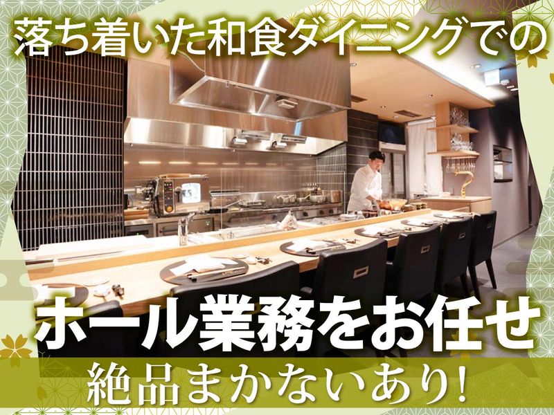 仕事内容 \バイトもプライベートも大切に!/ 落ち着いた和食ダイニングで働こう♪ ◆未経験大歓迎! ◆高時給▶時給1300円で効率よく働ける! ◆日祝休み▶家族や友達とゆっくり♪ ◆絶品まかないあり!(有料) ◆面接時履歴書不要! ◆1日3h~/週1日~OK! - 【お仕事内容】 日本料理に独創的な創作を加えた料理を 提供する新和食ダイニングでの ホール業務をお任せします! 具体的には… ・お客様のご案内 ・お料理やドリンクの配膳 など 店内は落ち着いた雰囲気ですが、 スタッフは未経験スタートがほとんどです! *動きやすい制服での勤務! 着物着用を希望の場合は相談OK *コース料理も充実しているので、 慌てずに接客ができます◎ - 【注目ポイントはコチラ!】 ◆高時給1300円スタート! ⇒効率よくしっかり稼げます◎ ◆週1日~OKの柔軟シフト ⇒授業終わりやWワークにもピッタリ。 日曜・祝日はお休みです♪ ◆上品だけど、親しみやすい空間 ⇒お客様も落ち着いた方が多く安心◎ ◆絶品まかない付き ⇒料理のセンスも自然と磨かれるかも! ◆大学生・主婦パート・フリーター・ 中高年・ミドルの方まで幅広く活躍中! ⇒未経験スタッフがほとんどです! ◆面接時に履歴書は不要です♪ ⇒お気軽にご応募ください! - 【お店について】 広島県産を中心とした旬の食材を目の前の 炭火で仕上げる焼き物と手間ひまかけた肴。 懐石コースのほか、気軽に味わえる 季節のおすすめ料理や店内で精米した こだわりのごはんをご用意しています。 モダンシックな店内は、カウンター席、 半個室、BOX席、完全個室をご用意。 ビジネスディナーやプライベート等多様な シーンに合わせてご利用いただけるお店です。