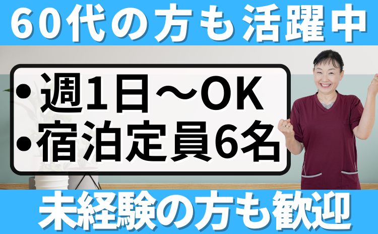 【相模原市緑区相原】 ■夜勤専従の介護職員 ■未経験OK ■週1日~ ■宿泊定員6名のみ ■残業なし