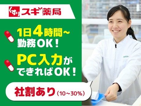 仕事内容 家事や子育てとの両立も応援!!働きやすさもスキルアップもスギ薬局で叶います! \ 人気の医療事務デビューはスギ薬局で / ―――――――――――――――――――― 7割以上が未経験スタート!学歴・資格不問 10代の学生さんから60代主婦(主夫)活躍中 週3日、1日4hからOK│オトクな社割あり 座学や動画マニュアルで商品・接客が学べる ―――――――――――――――――――― <仕事内容> 調剤サポート業務をお願いします。 ・処方箋の受付、PC入力業務、お会計 ・お薬のピッキング、在庫管理 ・待合室の清掃業務 など カンタン操作で進められる調剤機器を 活用するので誰でも正確に対応できますよ。 慣れればテキパキ進められ、集中していると あっという間に終わるカンタンなお仕事です。 ほかにも… *お薬の在庫管理や *待合室の整理整頓 なども大切なお仕事の一つ。 ホッとする対応や空間づくりをお願いします。 未経験で始めた先輩が多いからこそ、 同じ目線で優しく指導ができるので 医療事務デビューされたい方にピッタリです。 <自己研鑽の機会あり> ・医療事務を対象とした「集合研修」「テキスト研修」あり ・日々変わる医薬品の知識のアップデートや接客力の向上も◎ \将来的には…/ ・レセプト(診療報酬明細書)の作成 にも挑戦可能です!