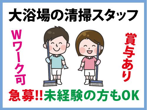 仕事内容 未経験OK!花巻温泉での清掃スタッフを募集いたします。 短時間×週3日~OK!家庭との両立もしやすいお仕事です。 「主なお仕事内容」 「花巻温泉 ホテル千秋閣」にて 大浴場や共用スペースでの清掃業務をおまかせいたします。 特別な技術や経験は不要! 丁寧な研修があるので安心して始められます! 〇大浴場内の清掃 〇共用部のトイレ清掃 〇備品の補充や点検 などをおまかせいたします。 男女ともに幅広い年代の方が活躍できます。 未経験からのスタートもOK! ブランクがある方もすぐに慣れれいただけます。 「おすすめポイント」 〇実働4.5時間の短時間勤務! 15時にはお仕事終了なので、 主婦(夫)の方や子育て中の方も働きやすい! 〇週3日~勤務OK! 〇扶養内勤務OK! 〇土日祝のみの勤務OK!学生さんにもおススメ! 〇長期で働くもOK!短期もOK! 応募について 年齢・経験・資格は一切不問! 「清掃の仕事は初めて」という方も、 先輩スタッフが丁寧にサポートします! もちろん経験者の方も即戦力として活躍できます! 「話だけ聞いてみたい」 「自分にできそうか相談したい」など、 ご応募前のお問い合わせもOK! あなたのご応募をスタッフ一同、心よりお待ちしております!