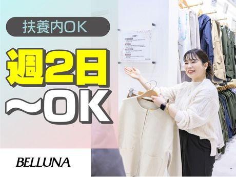 仕事内容 ベルーナのアパレル店舗スタッフ 通販ベルーナのアパレル店舗で 【販売スタッフ】を大募集☆彡 販売スキル不要!個人ノルマ無し! ◎仕事内容 夕勤の場合は、館にいらっしゃるお客様も少ないため、 商品陳列・整理、品出し等、が メイン業務となります。 ★商品陳列・整理 ★入荷処理 ★品出し・補充 ――――――――――― ◎お客様がいらしたら・・ ★販売・接客 ★レジ対応 ★試着やお探しの商品のご案内もあります。 ――――――――――― 閉店後は・・ ★クローズ作業(レジ締め・清掃など) 先輩スタッフのフォローがあるので安心◎ お店で活躍している方の約8割が未経験からのスタート! 自分で考えたコーディネイトをSNSで発信する事もできちゃう☆彡 ★嬉しい社割でオシャレを楽しめる★ お得な社員割引(30%オフ)が使えるから、 流行りやシーズンに合わせてオシャレを楽しみながら働くことが可能◎ [例]トップス 定価 2,490円 → 社割 1,743円 <上下コーディネートしても3500円程度♪> ★面接時のPOINT★ 【面接1回】で完結♪♪ 入社日は相談の上、決定します。ご希望をお聞かせください◎ <面接での質問内容をご紹介>※店舗により多少異なります ・カンタンな自己紹介 ・なぜBELLUNAにご応募いただいたか ・今までどんなお仕事を経験してきたか(もちろんアルバイトデビューもOK♪) ・ご希望のシフトや出勤日数・曜日など ・いつから働きたいか ◎面接といっても、堅苦しくない面談のようなスタイルで実施しますので、緊張せずにご参加ください! ◎履歴書不要!面接にお越しいただいた際に、アンケートシート(5~10分)の記入をお願いしています♪ ※アンケートシート(5~10分)+面接20~30分程度を予定しています!