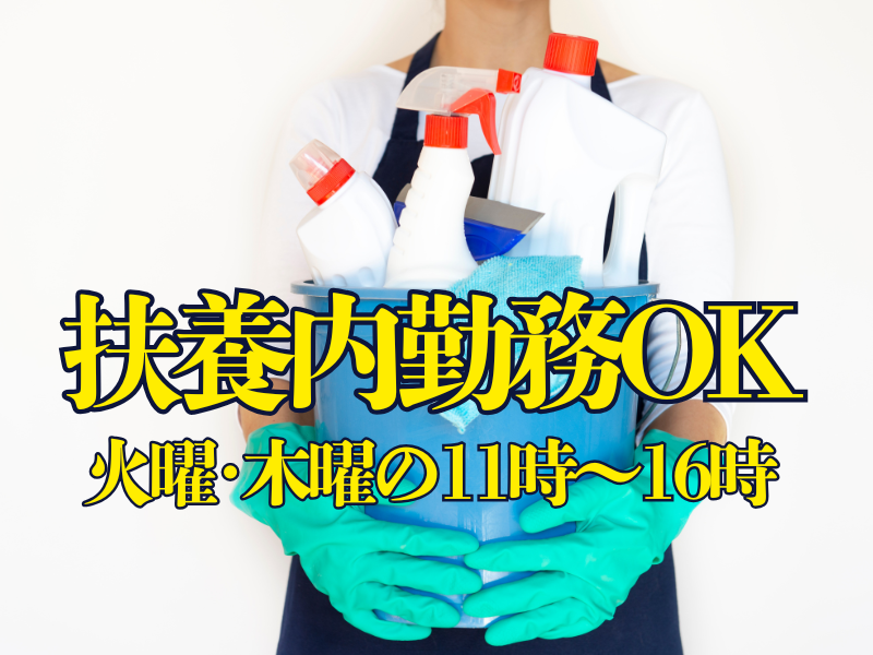 固定時間制 勤務時間詳細 11:00~16:00(実働5時間) ・火曜と木曜のみ週2日勤務 曜日応相談、ご希望の曜日があればご相談下さい。 / 一日の中で空いた時間を有効活用! \ 11時~16時まで! 朝の支度や家事が終わったあとに出勤◎ 終了後は夕飯のお買物やお迎えに丁度いい◎ 朝と夕方は家事や子育てに忙しいけど、 11~16時ならちょっと働くのに ちょうどいい時間♪ 無理なく負担なく、 軽い清掃のお仕事です◎
