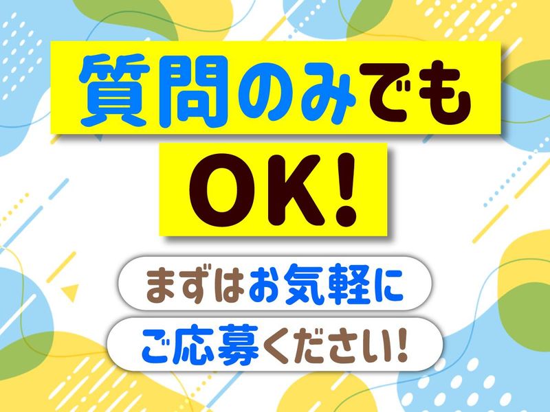 選考プロセス ★面接日・勤務開始日のご相談OK ★面接は1回のみ ★面接時、私服でOK 「応募画面へ進む」ボタンよりご応募ください。 ご応募後、採用担当者より追ってご連絡いたします。 職場の雰囲気や働き方について 「少し不安…」「まずは話を聞いてみたい」 という方も、相談や質問だけで大歓迎です! また、面接当日に 「少し遅れそう」「場所が分からない」 「体調不良のため日程を変更したい」など お困りのことがございましたら、 どうぞお気軽にご連絡ください。 お会いできることを楽しみにしております。